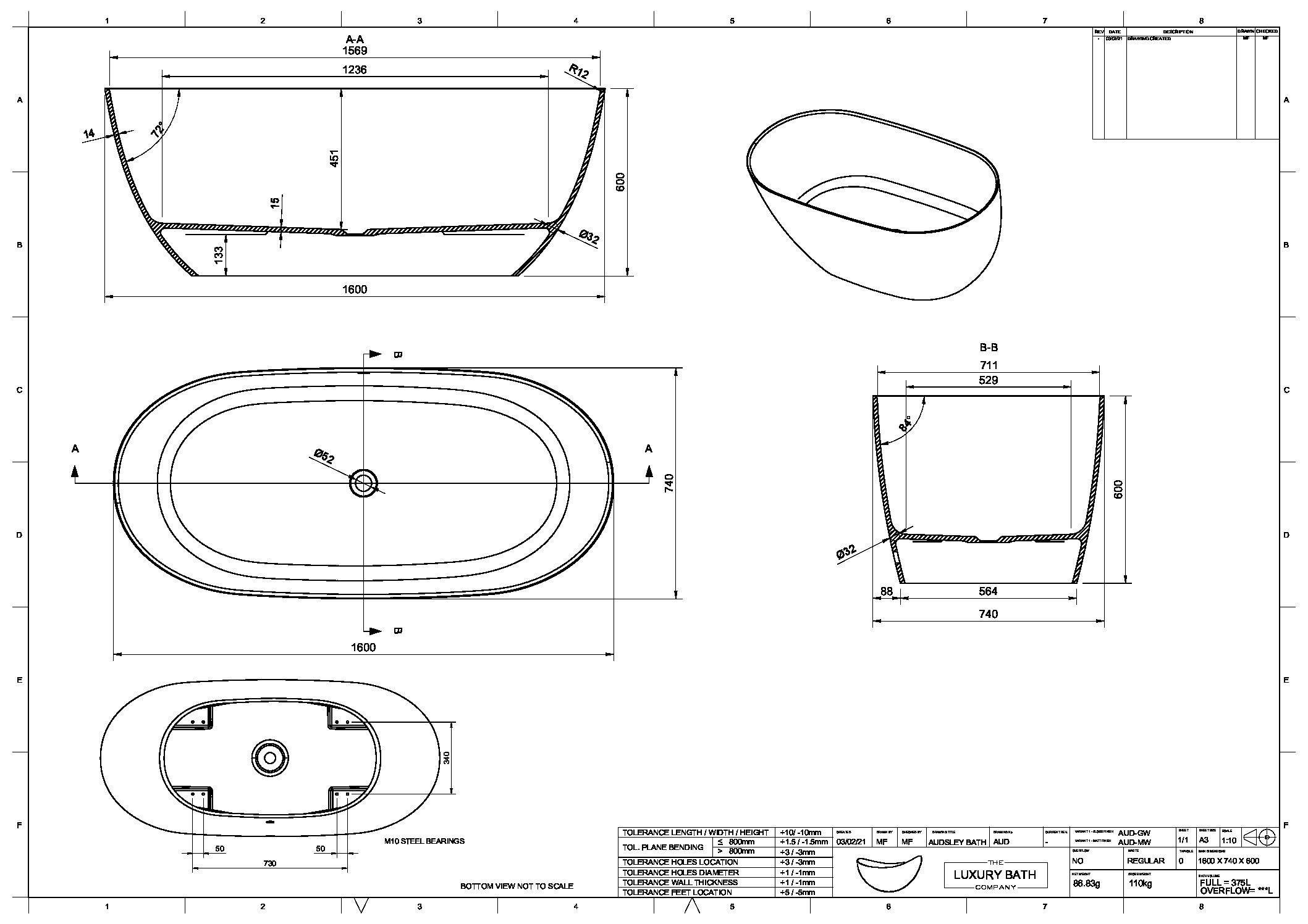 - Freestanding bath model: Audsley