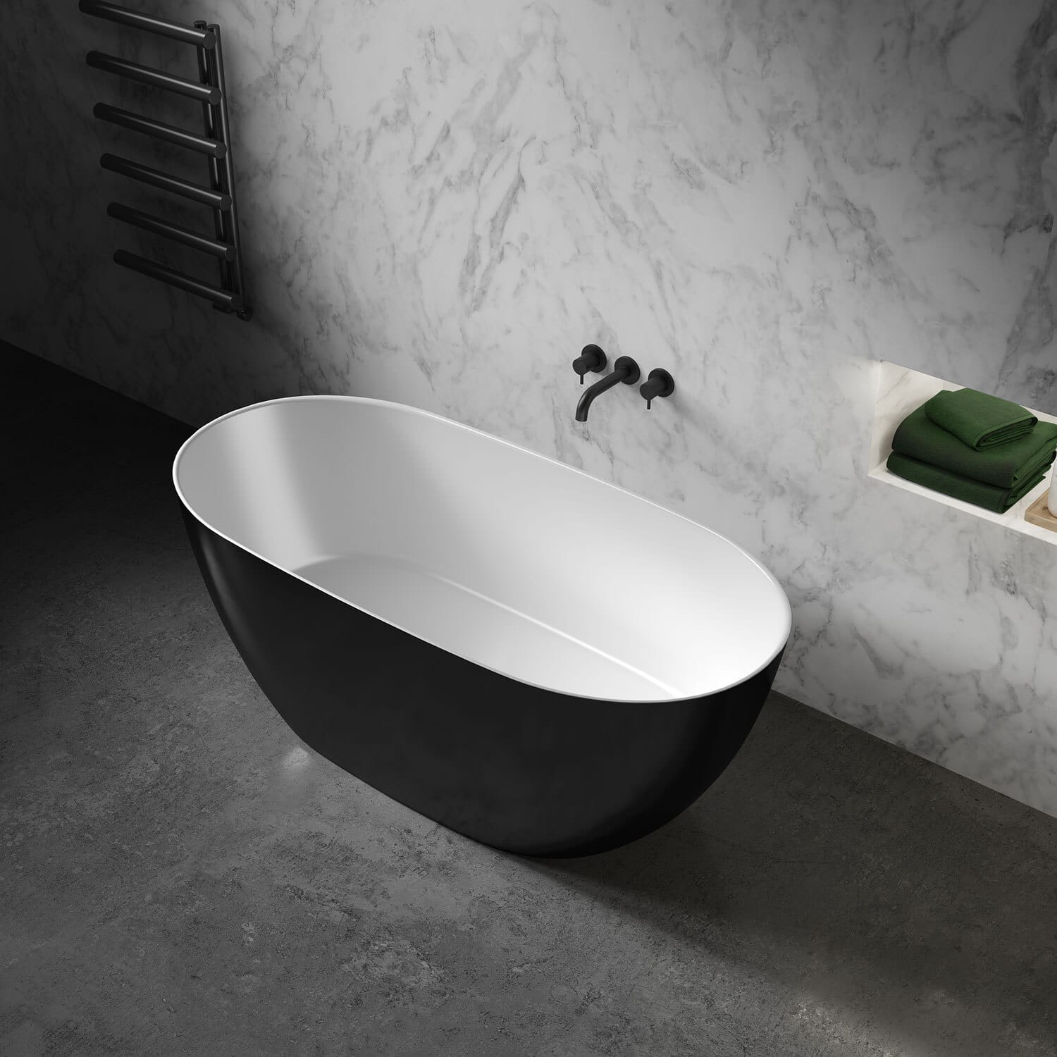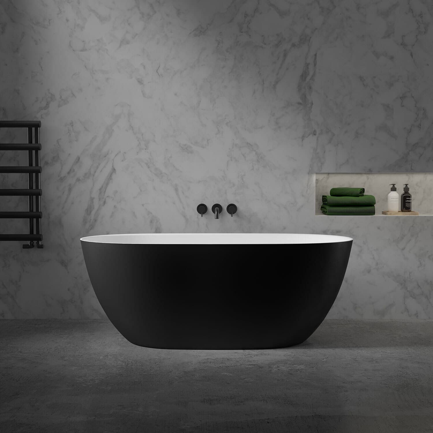 Model:Audsley Stone Resin Oval Black Freestanding Bath 1600