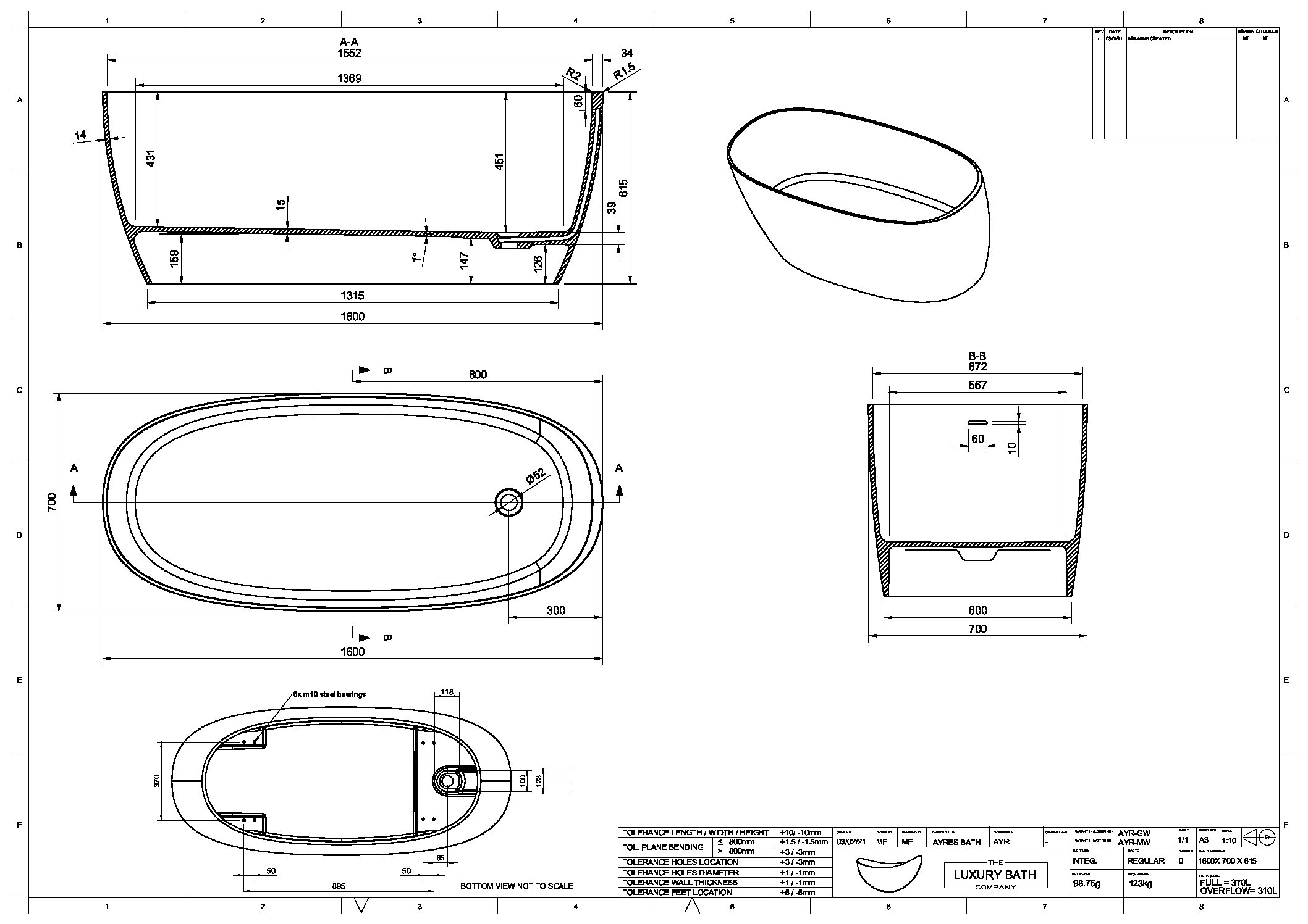 Model:Ayres Stone Freestanding Bath 1600
