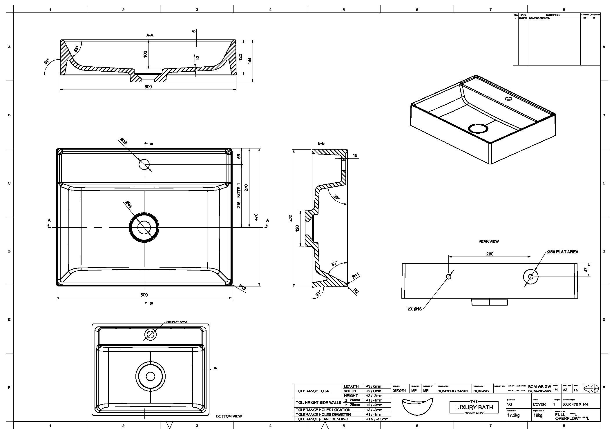 - Wash basin model: Bomberg