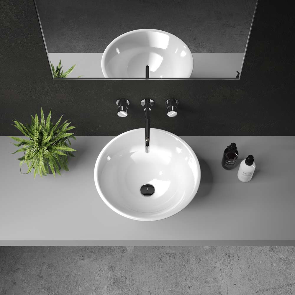 As if delivered straight from a potter’s wheel, the Chamberlain round stone countertop basin, reflects true contemporary artisan style. Organic curves, fluid lines and contours unite to create a voluptuous and sophisticated silhouette. The plinth design accentuates the profile and gives the round countertop washbasin a generous depth. The Chamberlain is unapologetically attractive.