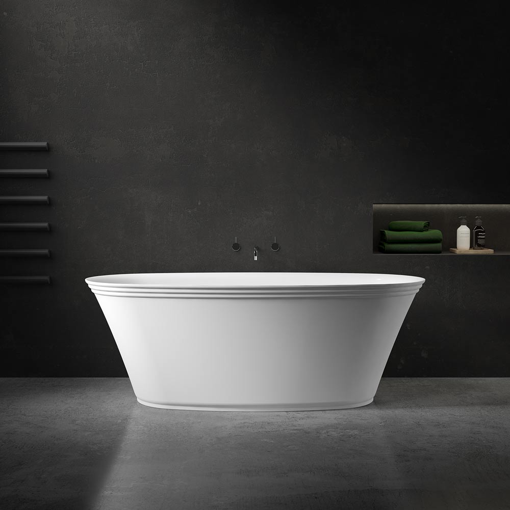 Reminiscent of traditional freestanding baths, the Constable unites design accents of the past with innovative contemporary features to create this striking bathroom style statement. Providing a deep and spacious bathing experience, the Constable natural stone freestanding bath is both imposing and inviting.