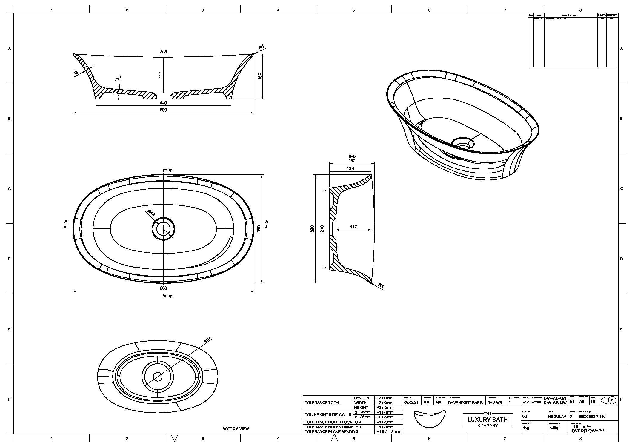 • Wash basin model: Davenport