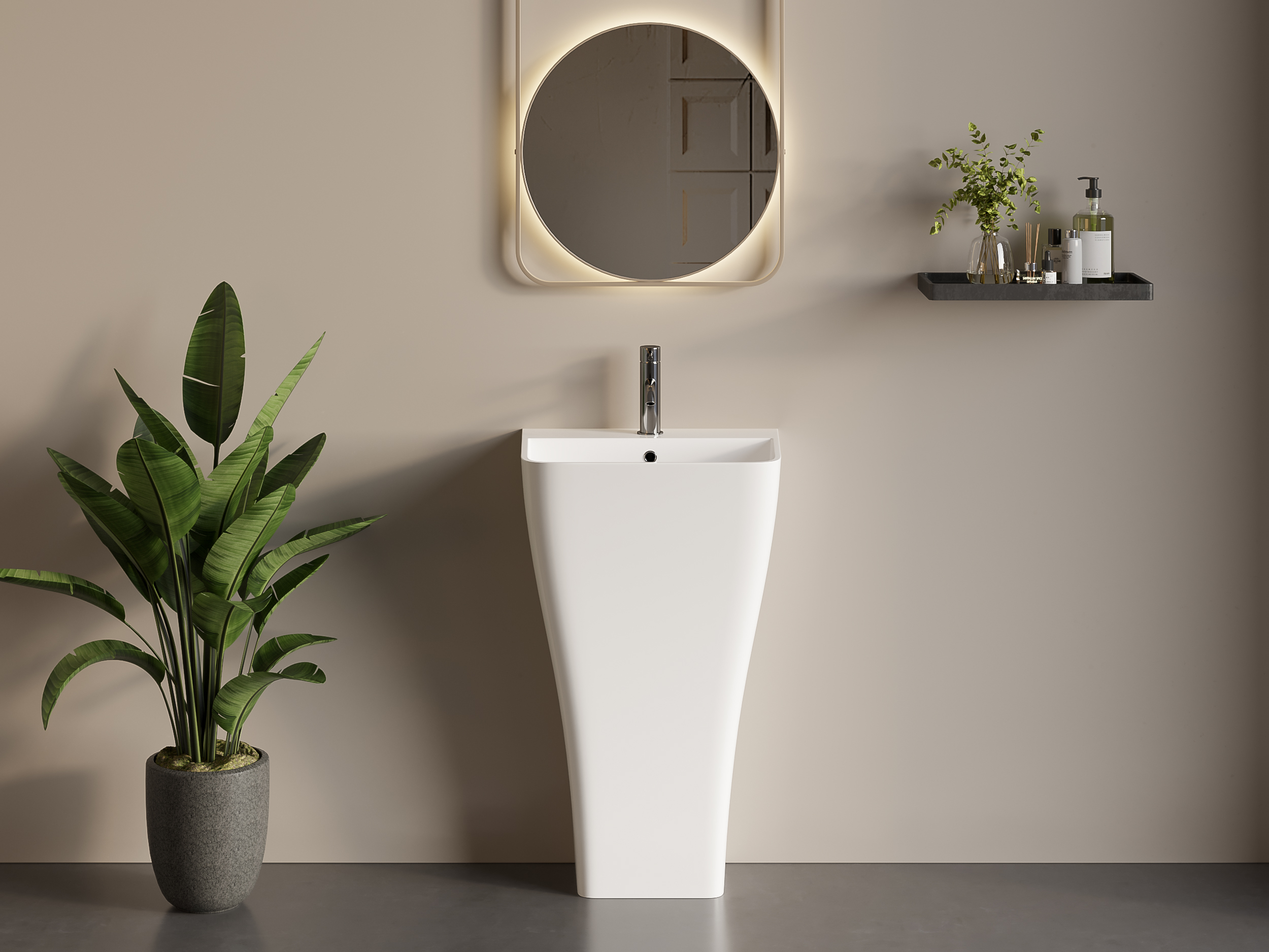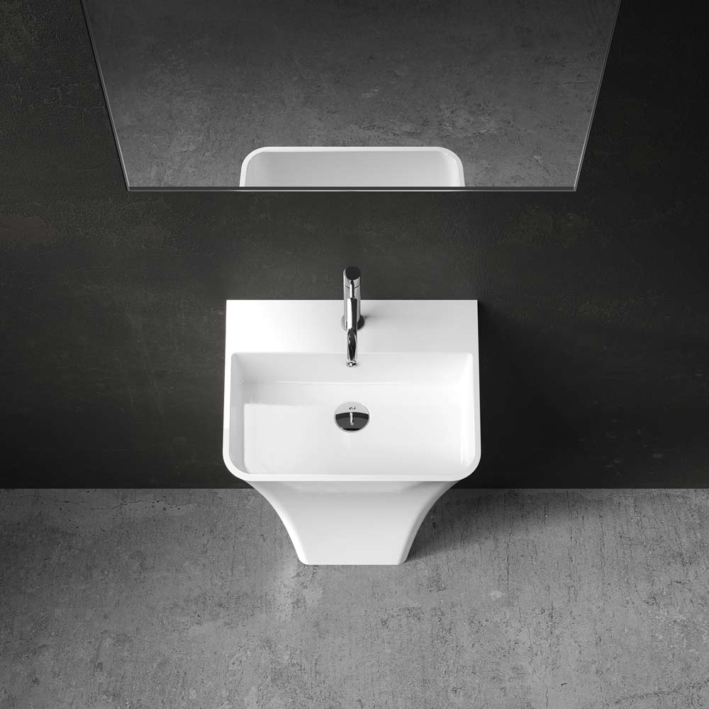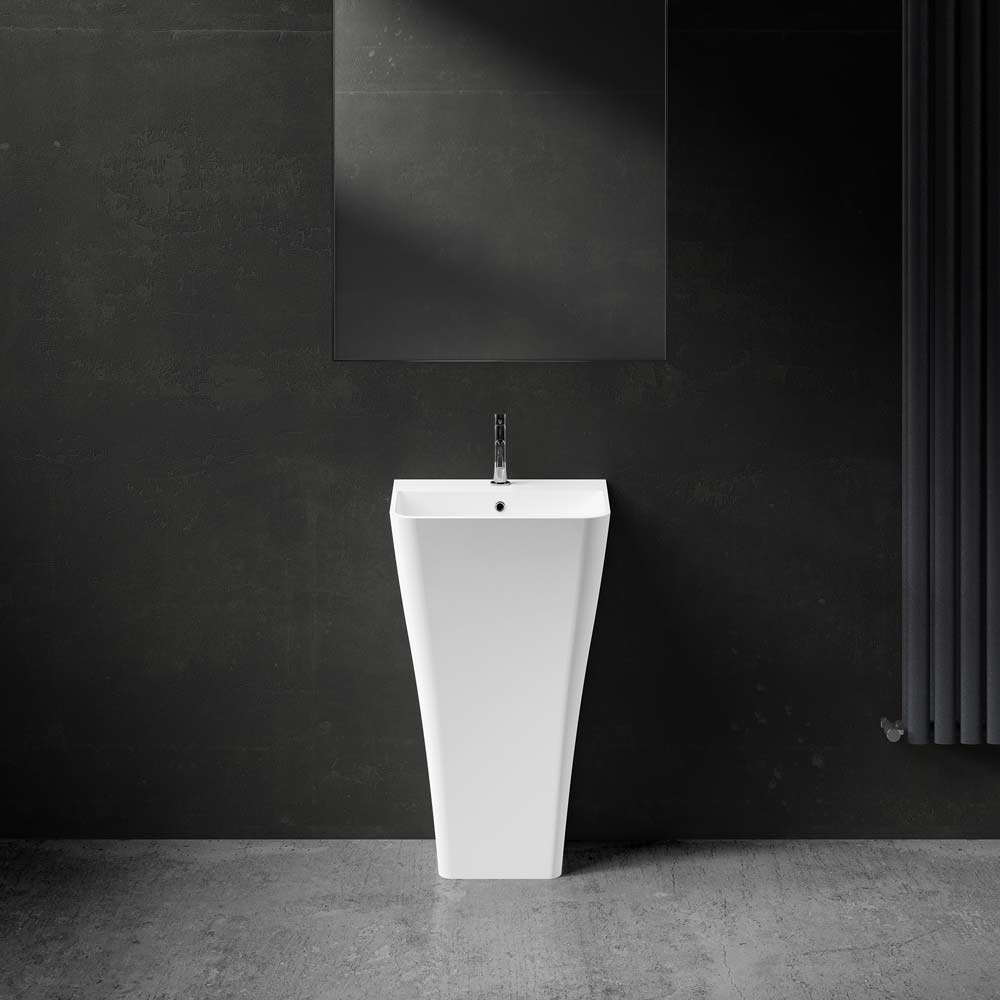 The Haydon stone freestanding basin creates a stunning focal point for a contemporary bathroom. The modern pedestal for the rectangular stone basin is exquisite; rounded corners and gentle contours soften the aesthetic and confirm the Haydon as a statement of unparalleled luxury.
