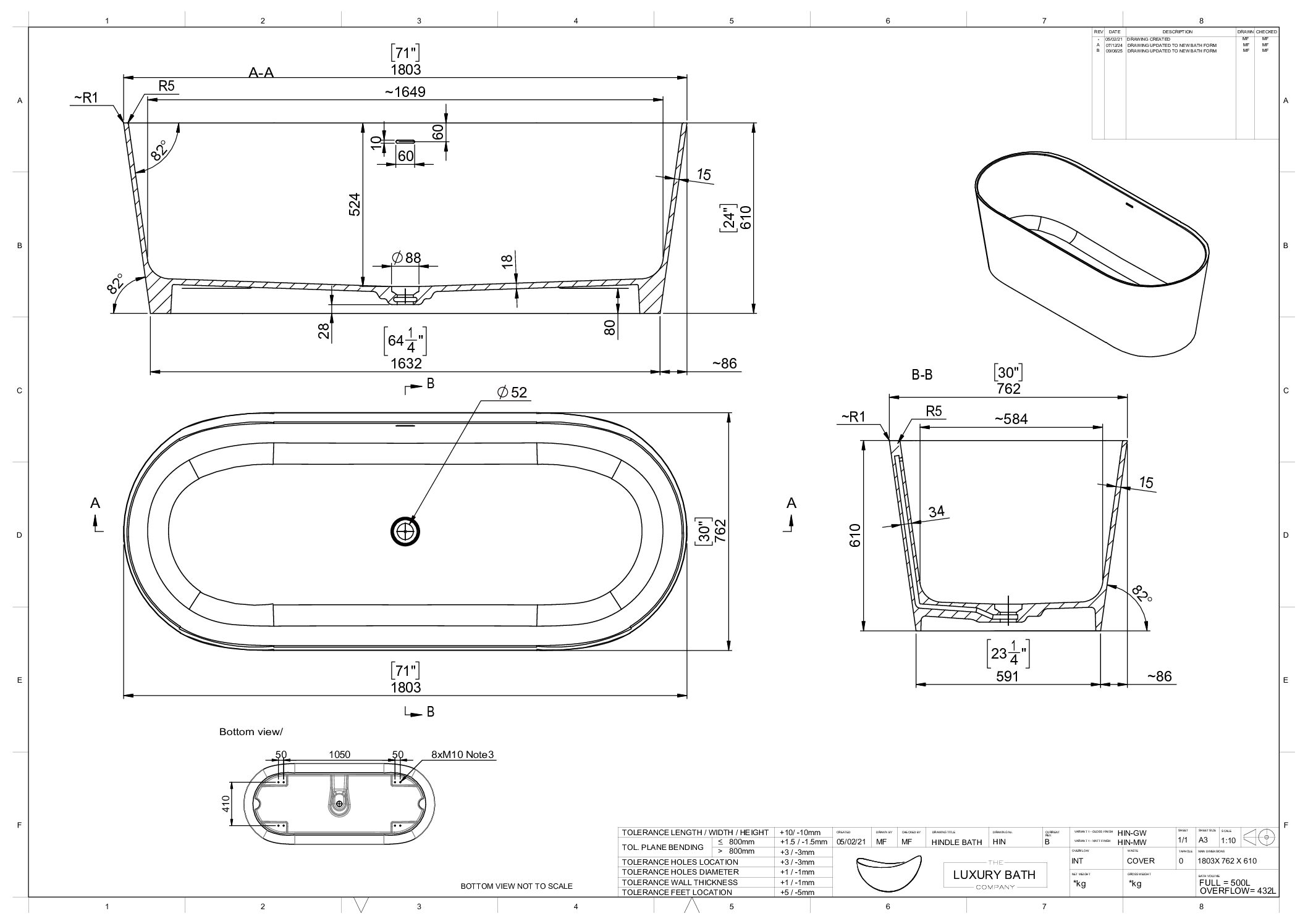 • The Luxury Bath Company requests a minimum of one person is available to take delivery.