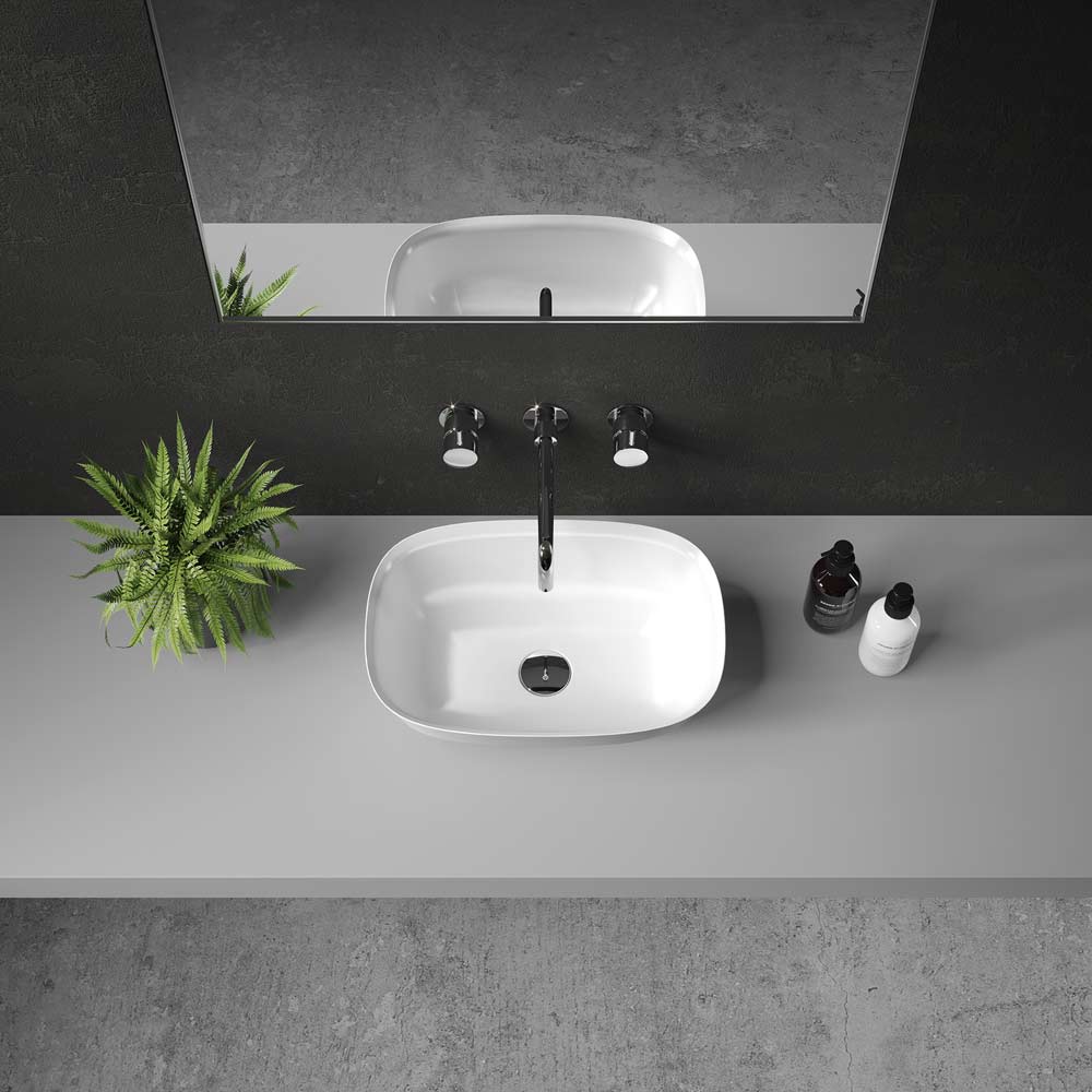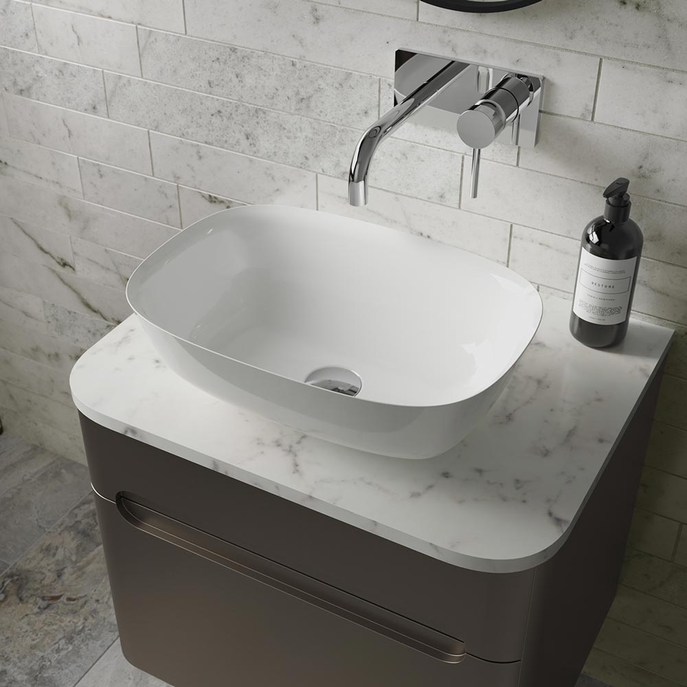 The Hockney stone countertop basin shows how harmoniously natural stone combines with for innovative design success. The luxury stone basin’s design suggests fragility, but the strength of the stone ensures the Hockney is an incredibly stylish but strong and durable addition to a busy family bathroom. The dimensions provide a generous capacity ensuring an enduring partnership between contemporary design and the practicalities of everyday living.