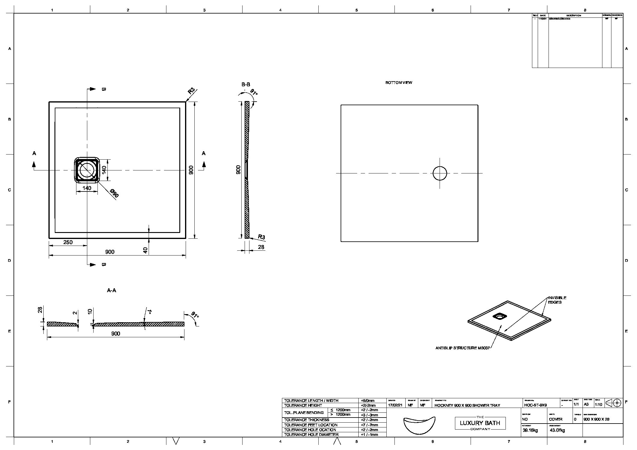 Dimensions:Length: 900mm  Width: 900mm  Height: 28mm