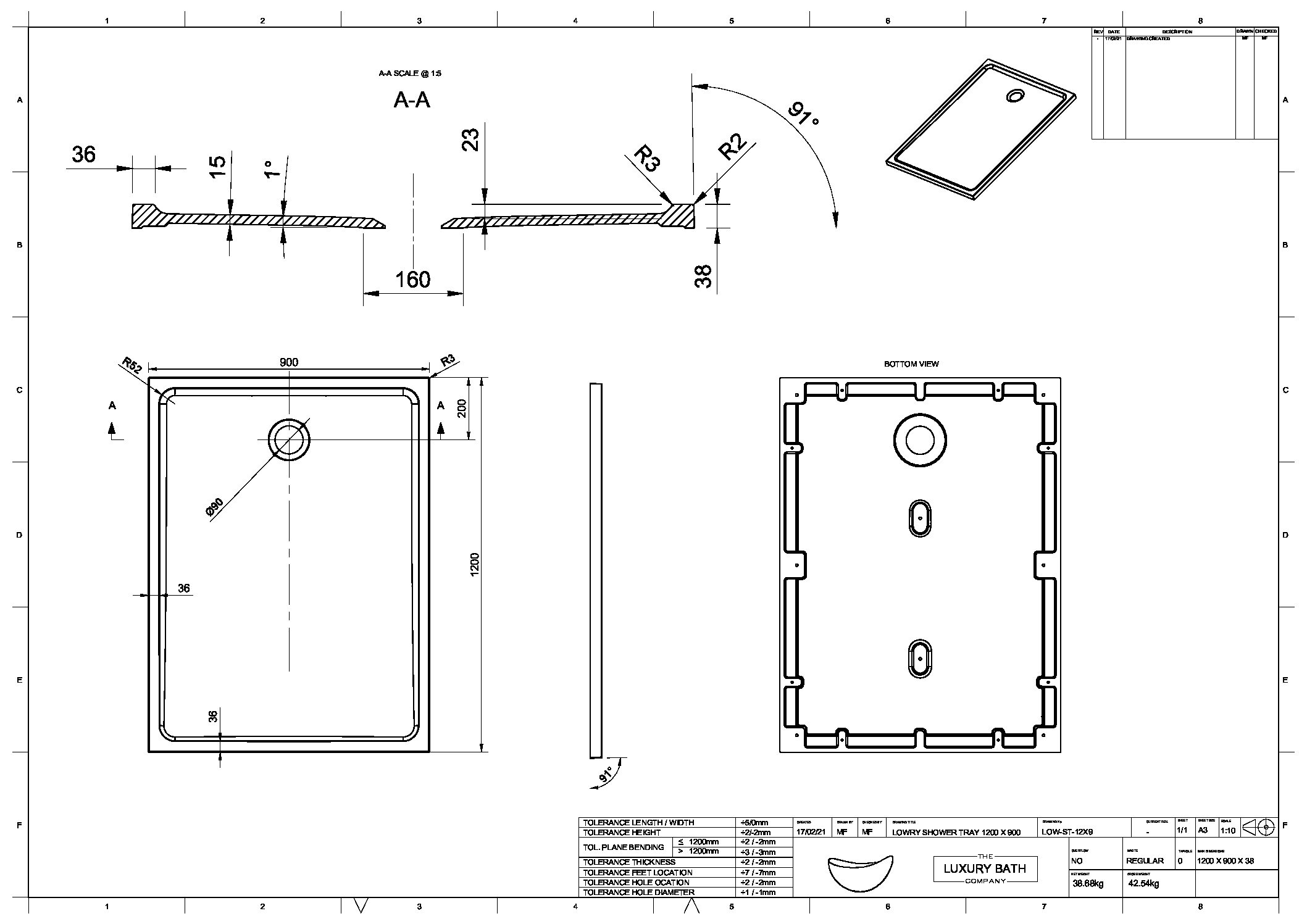 Model:Lowry Rectangular Shower Tray - 1200 x 900