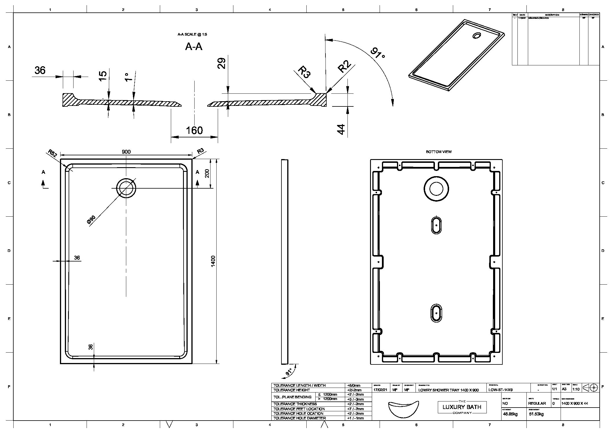 Model:Lowry Rectangular Shower Tray - 1400 x 900