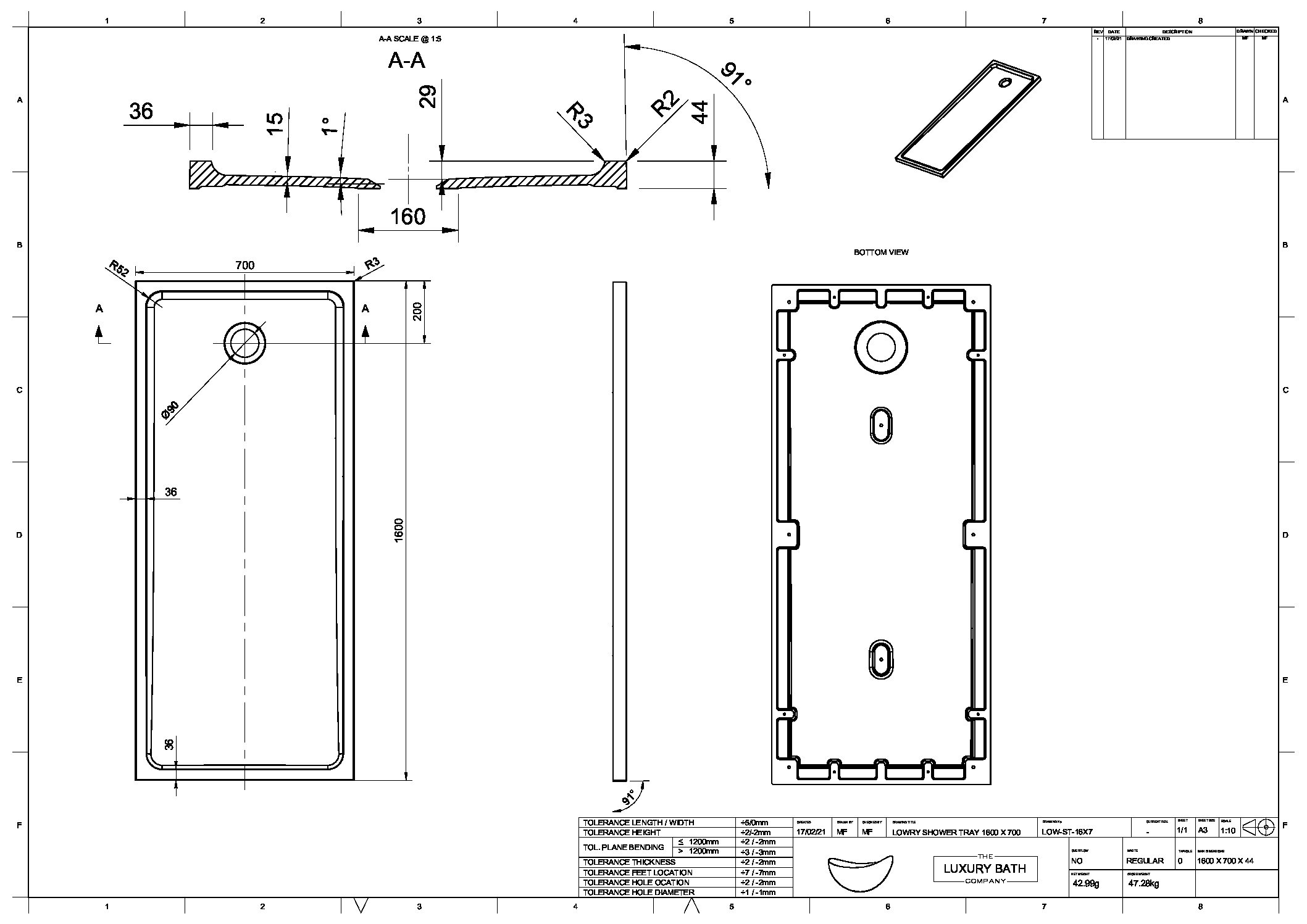 Model:Lowry Rectangular Shower Tray - 1600 x 700