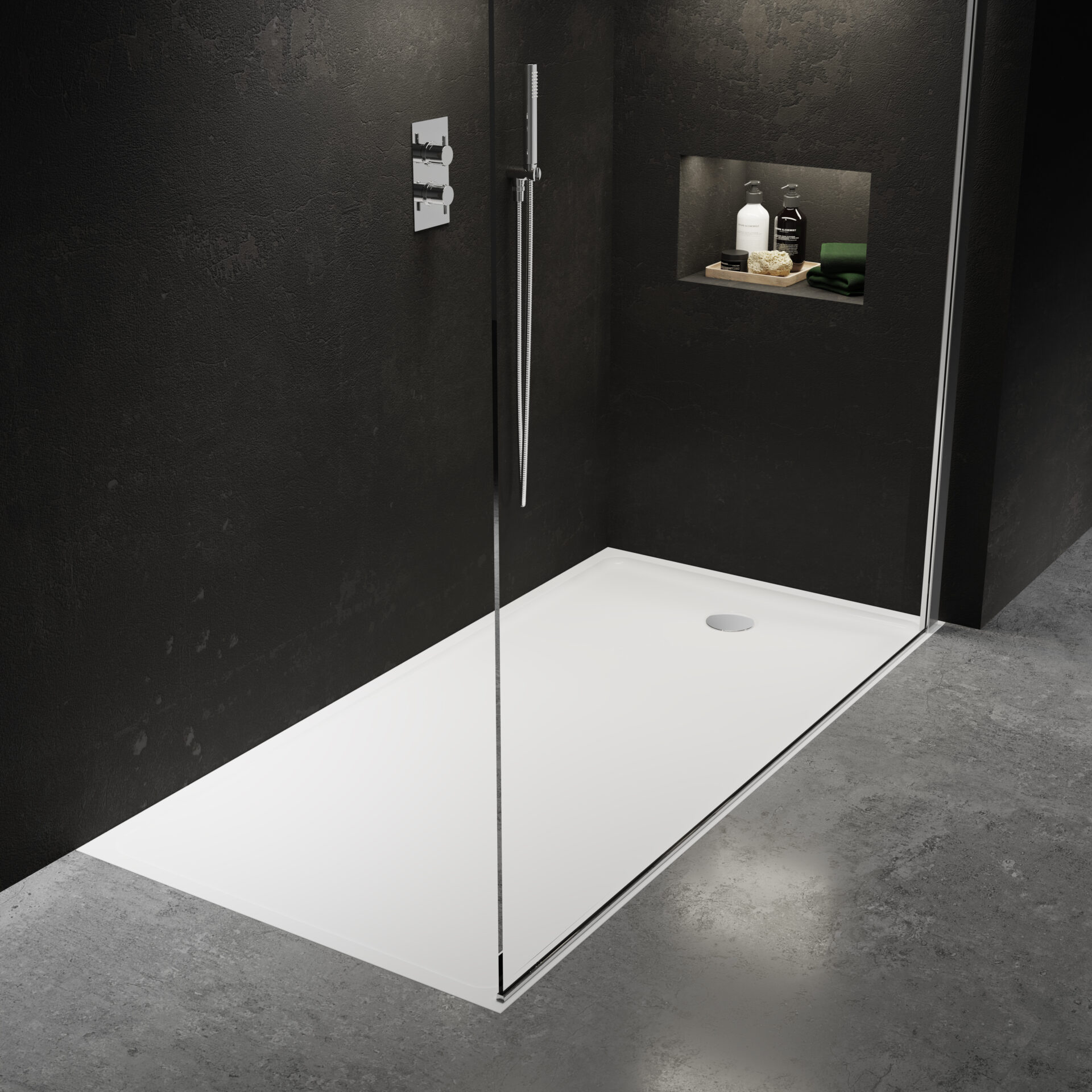 - Shower tray material: Natural stone