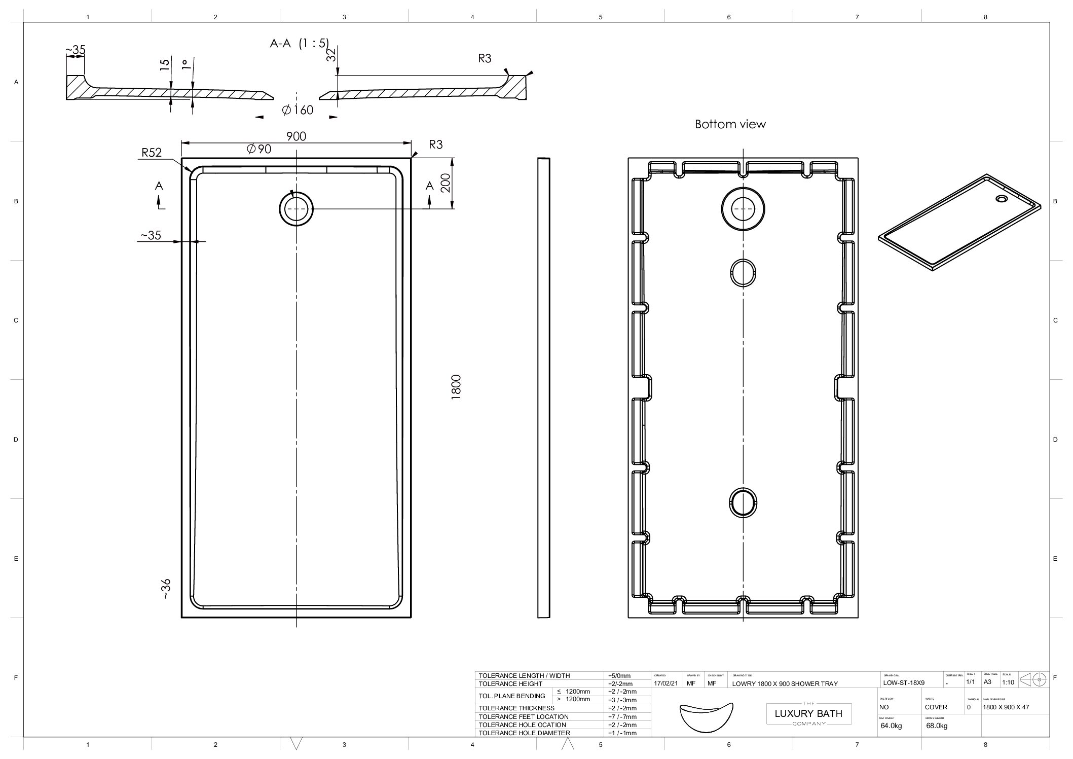 Model:Lowry Rectangular Shower Tray - 1800 x 900