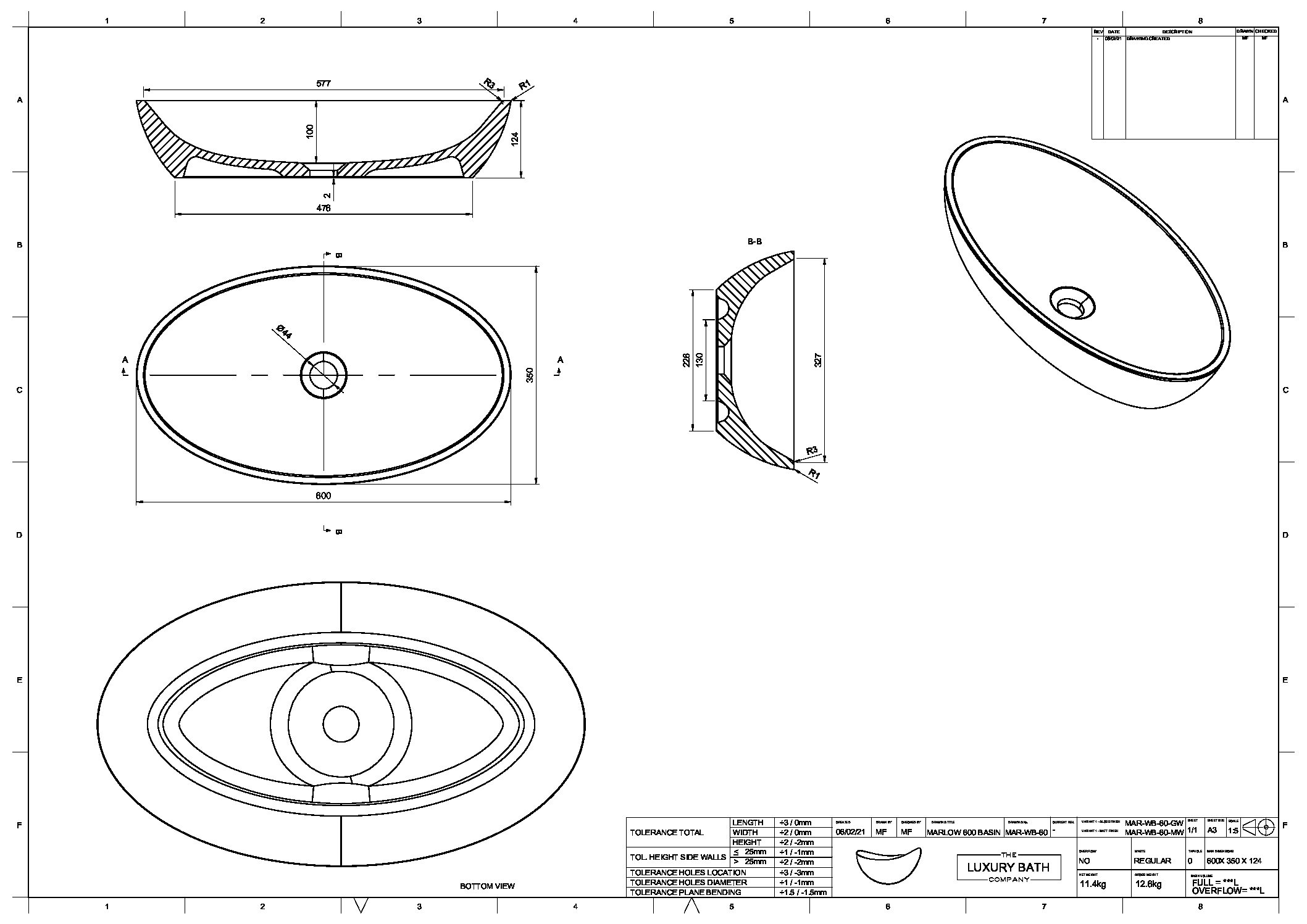 Dimensions:Length: 600mm  Width: 350mm  Height: 124mm