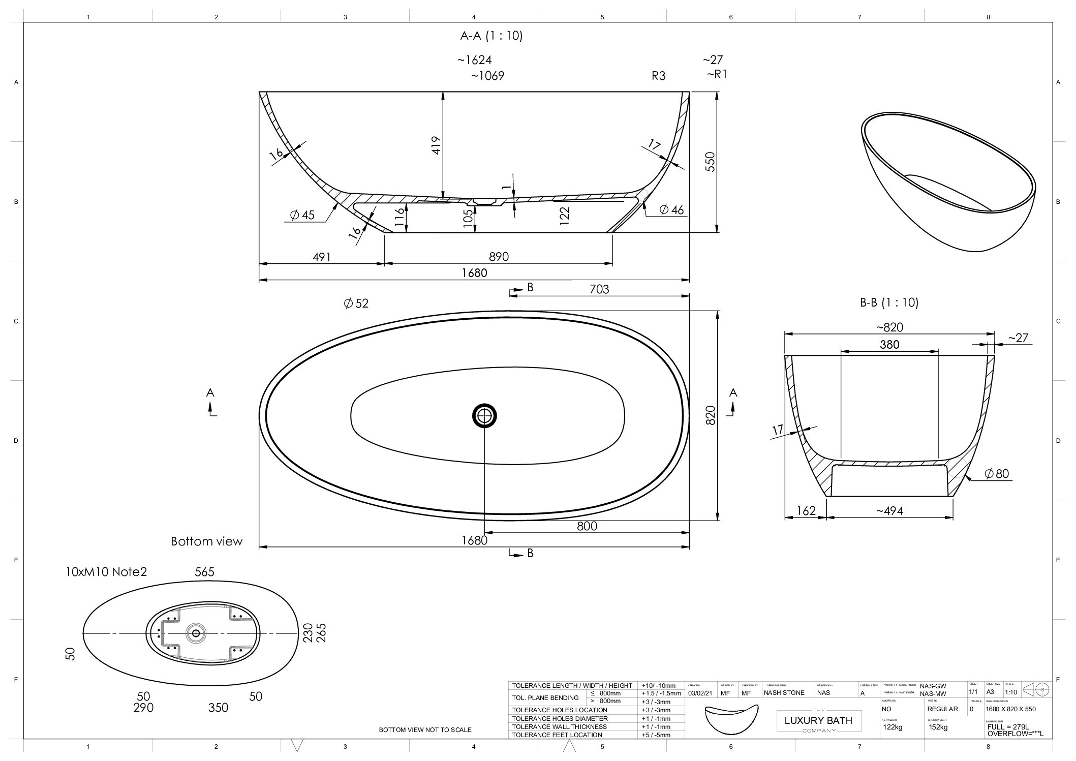 Model:Nash Stone Teardrop Freestanding Bath 1680