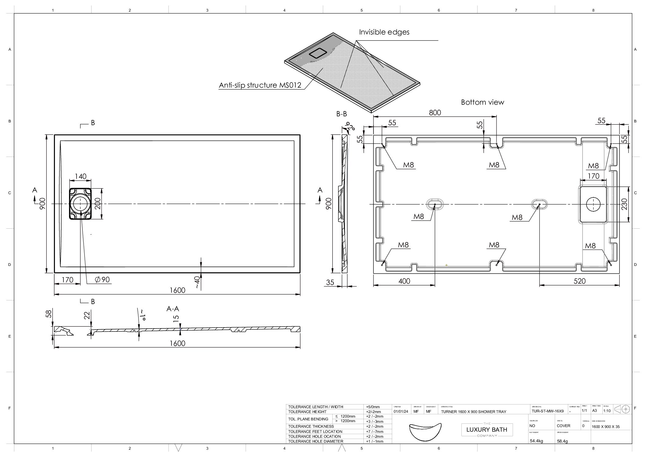 Dimensions:Length: 1600mm Width: 900mm Height: 35mm