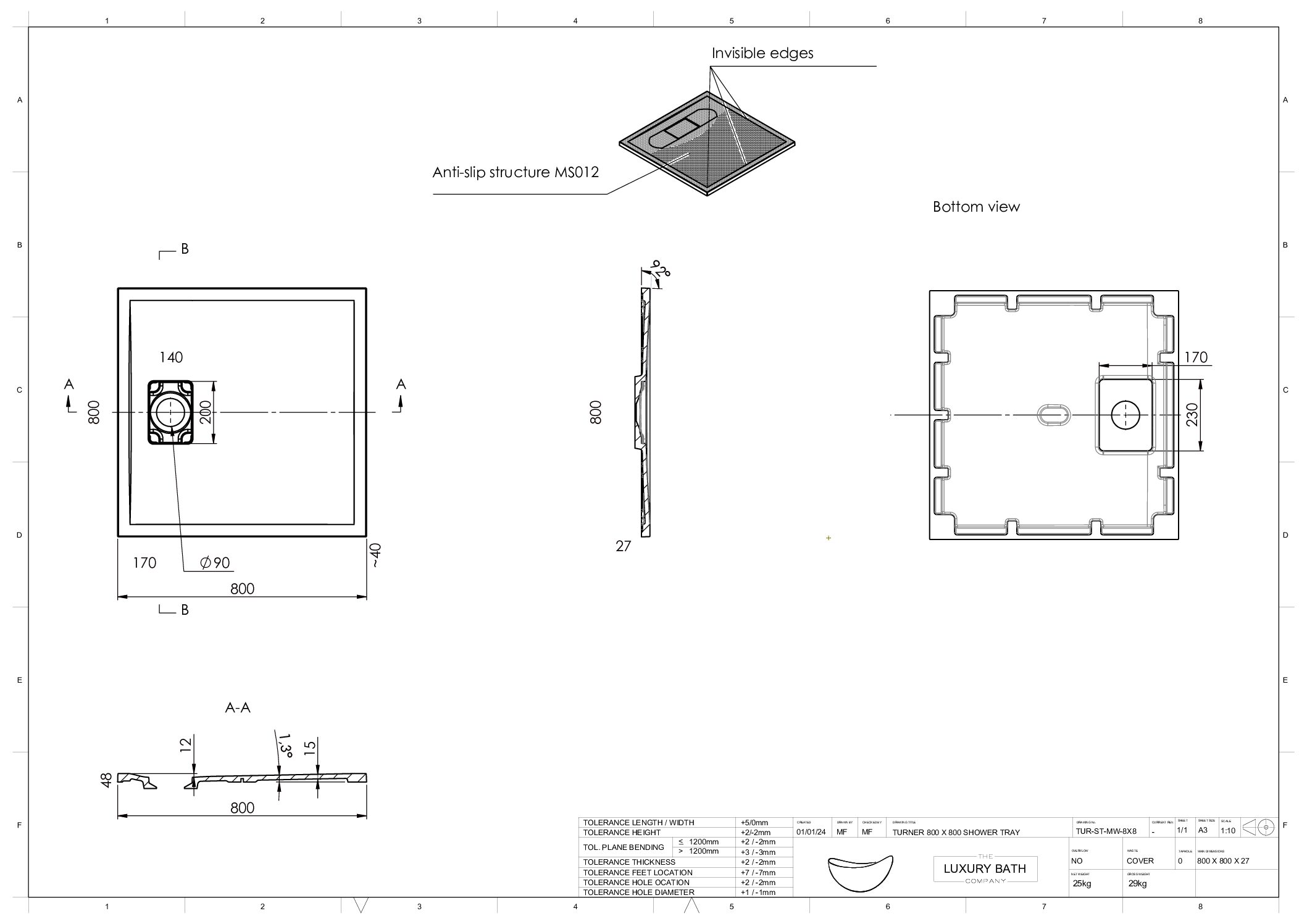 Model:Turner Square Shower Tray Matt White- 800 x 800